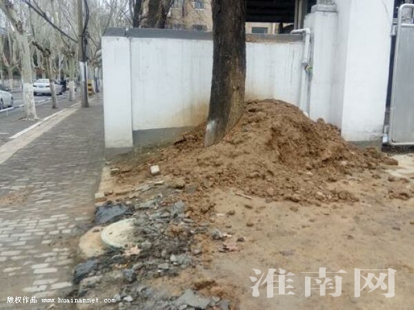 市民魏女士向淮河早報、淮南網(wǎng)記者反映,在劉家山路東段北邊的人行道邊,不知何人在路邊傾倒了一大堆黃色的渣土。前些天的一場雨水,導致渣土的黃色泥漿橫流,將路面及白色的圍墻弄臟。(記者)