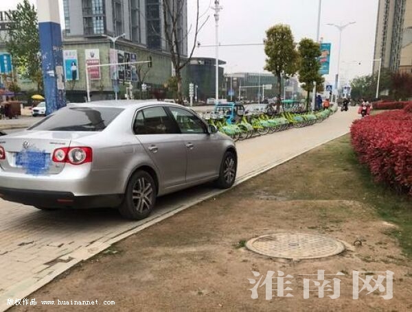 近日,在淮南實(shí)驗(yàn)中學(xué)山南校區(qū)門口,臨近下午放學(xué)時(shí)分,有輛小轎車停在學(xué)校門口的人行道上,阻礙師生和家長通行。(記者)