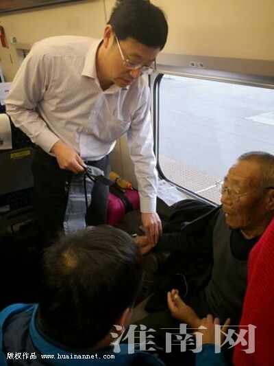 2018年4月15日上午9時(shí)40分左右,G355次北京開(kāi)往廈門(mén)的列車(chē),行駛至河北滄州至德州路段,突然傳來(lái)列車(chē)員的廣播求助:“13號(hào)車(chē)廂,有一名老人突發(fā)疾病,請(qǐng)列車(chē)上有醫(yī)護(hù)人員前往救助……”正從北京出差返回淮南的賈淮平與張文琪聞?dòng),立即起身前往,以最快速度趕往13號(hào)車(chē)廂進(jìn)行緊急救治。
