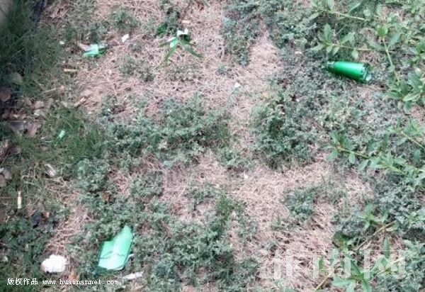 圖三:樓下草坪上的玻璃瓶碎片。(圖片由市民提供) (記者 王玲 實(shí)習(xí)生 邵壯 編輯 湯寧)