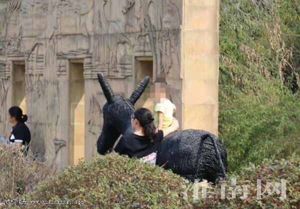 10月4日,八公山國家地質(zhì)公園內(nèi),一些家長縱容甚至帶領(lǐng)孩子違反景區(qū)規(guī)定,爬上園內(nèi)的稻草編織的獨(dú)輪車及動(dòng)物身上拍照玩耍,這種不文明行為引得其他游人憤懣不已。(記者)