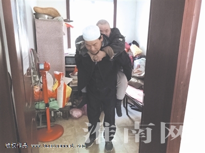 王忠奎告訴淮河早報(bào)、淮南網(wǎng)記者,父母共有6個(gè)孩子,他排行第四。父親從礦上退休比較早,每月退休金也不高,兄妹們的生活也都不寬裕。2014年,因礦業(yè)集團(tuán)啟動(dòng)棚改工程,住了幾十年破舊公房的他們終于搬到新建的新建小區(qū)內(nèi),擁有了寬敞明亮的樓房?扇疫沒高興多久,三哥就因病情發(fā)展而癱瘓?jiān)诖擦恕!翱吹礁改改昙o(jì)這么大還要忙這忙那,我心有不忍,就和妻子商量,主動(dòng)擔(dān)下了照顧父母和哥哥的重任。而妻子為了讓我安心工作,承擔(dān)了大部分的家務(wù)活,一日三餐、打掃衛(wèi)生不說,有時(shí)還要背起比她重很多的三哥去廁所,累得腰都直不起來!蓖踔铱f,這幾年多虧了妻子的精心照料,癱瘓?jiān)诖驳母绺绮艣]有病情惡化,而父母和他也因此省心不少。