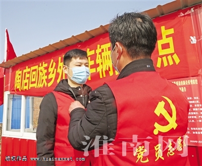 壽縣陶店回族鄉(xiāng)地處瓦埠湖畔,通往外界的主要道路是堰陶公路,他們在這里設(shè)置黨員先鋒崗,共產(chǎn)黨員張燁、朱多啟、曹澤、陳川、陶大浪等同志充分發(fā)揮先鋒模范作用,24小時不間斷排查外來車輛,戰(zhàn)斗在疫情防控第一線。(記者 倪軍 陳海濤 通訊員 趙陽)