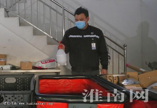 “我們這個(gè)站點(diǎn)主要負(fù)責(zé)田家庵區(qū)淮河大道立交橋以西部分的快件攬投,春節(jié)至今,我們?cè)谧龊靡咔榉揽氐耐瑫r(shí),一天都沒(méi)有停止過(guò)營(yíng)業(yè)”,姚多亭介紹:“每天我們都要多次對(duì)物場(chǎng)進(jìn)行消毒,凡是從我們這里進(jìn)出的快件,包括我們快遞員都要經(jīng)過(guò)消毒處理。”姚多亭說(shuō),他和同事原本春節(jié)值班表都安排好了,結(jié)果沒(méi)想到,遇到了新型冠狀病毒感染的肺炎疫情?紤]到愛(ài)心人士及廣大市民的用郵需求,他和同事立刻取消了放假安排,馬上投入工作。目前,姚多亭主要負(fù)責(zé)網(wǎng)點(diǎn)的快件攬收裝車(chē)等工作,2月3日,淮河早報(bào)、淮南網(wǎng)記者在現(xiàn)場(chǎng)看到,一件寄往湖北省內(nèi)的快件經(jīng)過(guò)消毒、驗(yàn)視、打包、貼單、安檢,即走上“綠色通道”。據(jù)姚多亭觀察,春節(jié)至今僅他這一個(gè)快遞網(wǎng)點(diǎn)的攬投量就增加了兩三倍,其中經(jīng)他手發(fā)往湖北武漢的快件達(dá)千件之多,且不少是市民捐贈(zèng)的口罩等防疫用品,這些物品全走“綠色通道”,火速發(fā)往武漢。