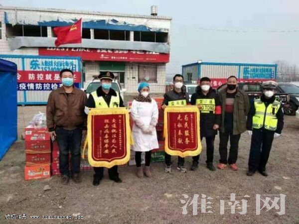 (記者 張雪峰 通訊員 薛全道)2月3日下午,淮南宇晟新型教材司負責(zé)人,向戰(zhàn)斗在疫情一線的淮南市公路局G206曹庵疫情防控檢查卡點送來兩面寫有“為民服務(wù)無私奉獻”“交通執(zhí)法為人民 阻擊病毒保平安”的錦旗,還送來了口罩、方便面、礦泉水等慰問品,對日夜堅守阻擊疫情的執(zhí)法人員以及工作人員認真負責(zé)態(tài)度表示衷心感謝。