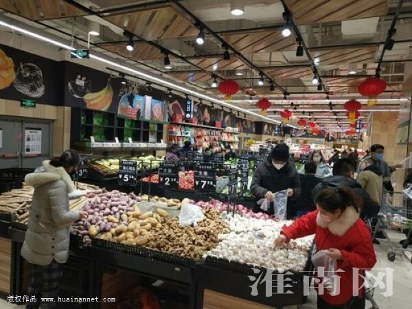 在大潤發(fā)超市里,淮河早報、淮南網(wǎng)記者看到,一樓的生鮮區(qū)有不少市民正在選購蔬菜,貨架上的菜品也比較豐富,部分菜品一出現(xiàn)斷貨,超市工作人員就立即補貨,不影響市民購買。超市生鮮部的負責(zé)人表示,他們每天都從外地調(diào)運大量的蔬菜來淮供應(yīng),本月1號、2號兩天,超市蔬菜的調(diào)貨量就達到6噸左右,從3號開始降為3至4噸,平均每天蔬菜供應(yīng)品種在120種左右,基本能滿足周邊地區(qū)居民生活需要,并根據(jù)老百姓購買的品種多少,在下一次進貨時重點補貨。而水果類中,像蘋果、桔子、橙子等較常見的水果供應(yīng)量比較充足,肉類則從阜陽、宿州等地進貨且貨源充足。雞蛋的供應(yīng)量在一天半噸左右,存貨量有四噸!稗r(nóng)超對接”蔬菜每天有15種,且供貨量比較充足,按照低于或等于物價局核準的價格銷售。同時,超市還開設(shè)有線上吊掛系統(tǒng),主要是為了線上外賣配送,一天約四百余單。該超市相關(guān)負責(zé)人表示,超市里手推車、購物籃一天兩次消毒,商場一天三次消毒,分別在開門前一次,下午兩點一次,關(guān)門前一次,而手扶梯則是一天三遍消毒,讓市民可以安心購物。在位于國慶路的永輝超市里,各種菜品、水果也是一應(yīng)俱全。