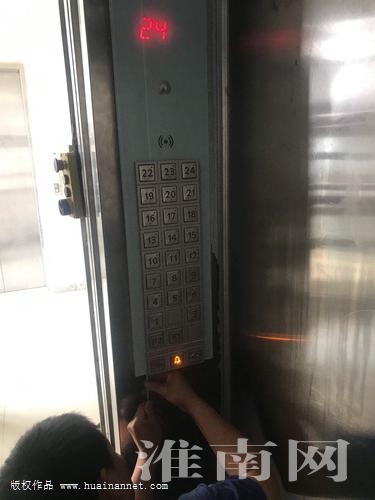 圖為施工方對(duì)電梯進(jìn)行調(diào)試。