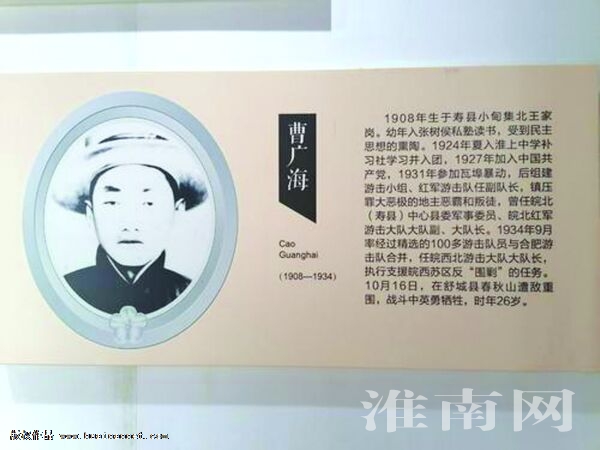 1927年,經(jīng)過5年的革命思想學(xué)習(xí)與武裝斗爭的洗禮,曹廣海如愿加入了中國共產(chǎn)黨,成為了無產(chǎn)階級先鋒隊的一員。第二年,他考入合肥正誼中學(xué)。在校期間,他因參加了學(xué)生運動被校方開除,隨后回到家鄉(xiāng)繼續(xù)開展革命斗爭。