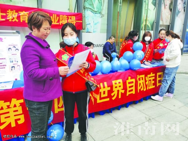 4月2日是第14個世界自閉癥關(guān)注日,淮南市孤獨癥聯(lián)誼會的老師們走上街頭,通過發(fā)放資料等方式,讓更多的人了解、關(guān)注、尊重和接納自閉癥兒童,讓“星星的孩子”也能散發(fā)獨特光芒。(記者 周瑩瑩)