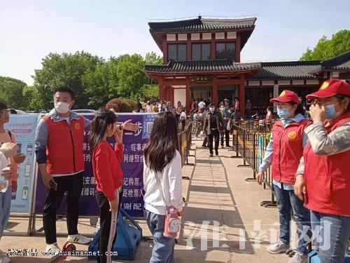 5月5日下午,淮河早報(bào)、淮南網(wǎng)記者來到八公山風(fēng)景區(qū),在景區(qū)入口,便看到一位位穿著“紅馬甲”的志愿者正為游客登記、檢測(cè)體溫。而在售票窗口旁,也有志愿者忙碌的身影,他們協(xié)助游客購票,并解答一些游客咨詢的問題。