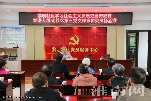 10月11日上午,田家庵區(qū)洞山街道黎明社區(qū)舉行學(xué)習(xí)社會(huì)主義發(fā)展史宣傳教育活動(dòng),邀請(qǐng)市哲學(xué)學(xué)會(huì)名譽(yù)會(huì)長(zhǎng)、黎明社區(qū)“七彩幫客”紅色宣講服務(wù)隊(duì)黨建指導(dǎo)員、黎明社區(qū)第三黨支部宣傳委員楊孟淮為社區(qū)近百名黨員群眾作專題宣講,進(jìn)一步堅(jiān)定大家對(duì)馬克思主義的信仰、對(duì)中國(guó)特色社會(huì)主義的信念。 (記者 李東華 通訊員 吳喆敏)