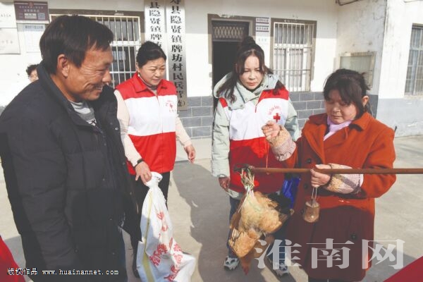 (記者 廖凌云)“這公雞真漂亮!”“這只鴨子足足有五斤重!”1月15日上午,壽縣隱賢鎮(zhèn)牌坊村村委會門前很是熱鬧,人們搬的搬、抓的抓、稱的稱、算的算……個個忙得不亦樂乎。當(dāng)天,淮南市紅十字會組織志愿者前來購買“愛心雞”“愛心鴨”,幫助村民銷售自家養(yǎng)殖的雞鴨,并開展慰問幫扶戶活動。