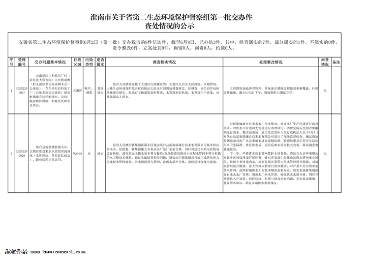 淮南市關(guān)于省第二生態(tài)環(huán)境保護(hù)督察組第一批交辦件查處情況的公示