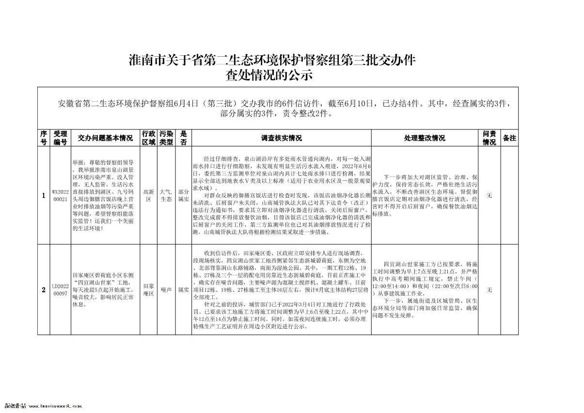 淮南市關(guān)于省第二生態(tài)環(huán)境保護(hù)督察組第三批交辦件查處情況的公示