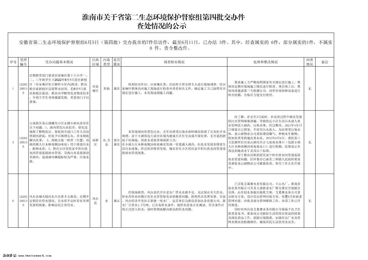 淮南市關(guān)于省第二生態(tài)環(huán)境保護督察組第四批交辦件查處情況的公示