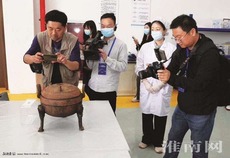 在距離武王墩墓不遠的考古實驗室內(nèi),考古人員身穿白色工作服,面對出土文物,察微探細,運用現(xiàn)代科技,對文物進行妥善保護、研究。
