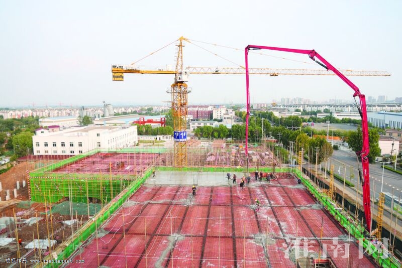 圖為八公傳奇綠色食品工貿(mào)產(chǎn)業(yè)園項(xiàng)目緊張施工中。(記者 尚家起 攝)