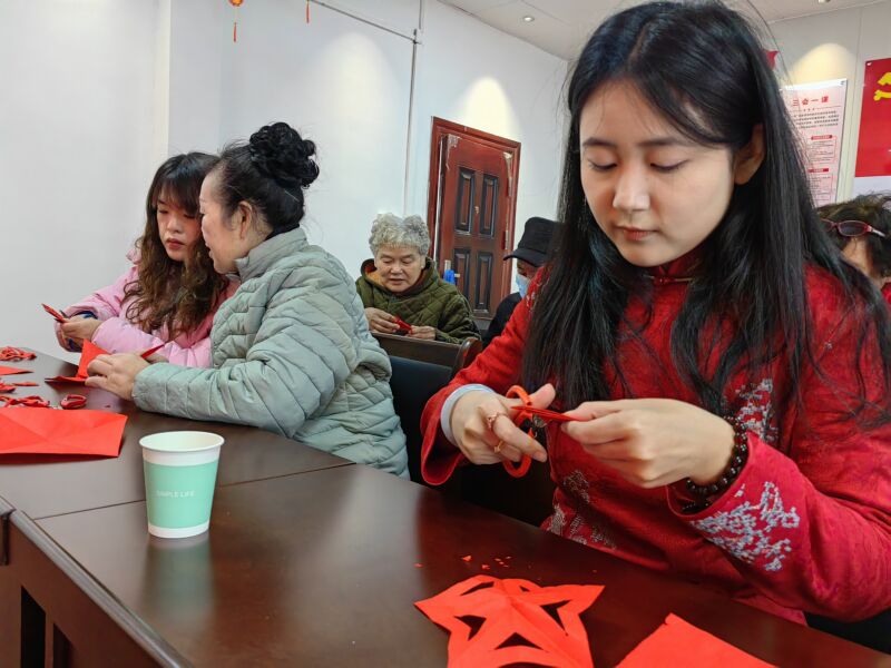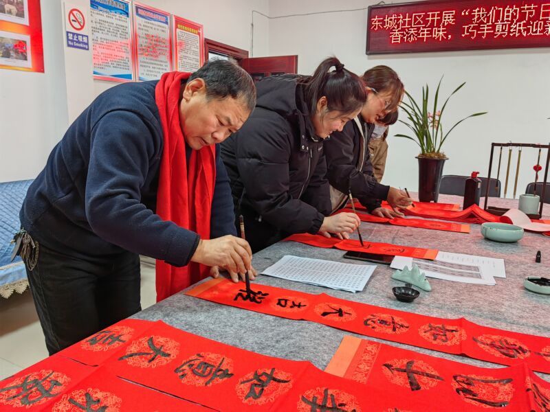 “迎喜迎春迎富貴,接財(cái)接福接平安”“好!這個(gè)春聯(lián)寫得真好!”“剪窗花首先要把紙對(duì)折,拿剪刀剪的時(shí)候一定要注意,不要急,慢慢來!惫P走龍蛇的書法、惟妙惟肖的窗花、喜慶的紅燈籠……近日,田家庵區(qū)淮濱街道東城社區(qū)新時(shí)代文明實(shí)踐站活動(dòng)室里熱鬧非凡,處處洋溢著喜慶祥和的氛圍,眾多居民齊聚一堂,寫春聯(lián)、剪窗花,共同迎接新春佳節(jié)的到來。