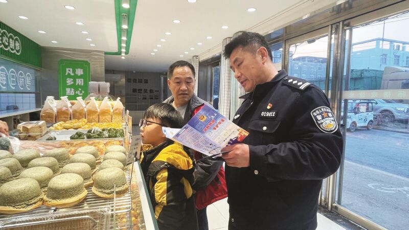 跟著民警們的腳步,記者又走進(jìn)一家蛋糕店,店內(nèi)彌漫著香甜的氣息,櫥柜里擺滿了各式各樣精美的蛋糕。此時(shí),幾位頭戴防塵帽的女店員們正忙碌著顧客包裝著糕點(diǎn),家長在排隊(duì)付賬,拿到糕點(diǎn)的孩子滿臉笑容。在這里,民警們不僅送上宣傳單,還詳細(xì)跟店內(nèi)人員和顧客介紹了一些常見的詐騙手段和防范方法。聽到民警們的介紹,在旁邊選購糕點(diǎn)的一位年輕媽媽也抱著孩子走了過來,好奇地詢問關(guān)于網(wǎng)絡(luò)購物詐騙的問題,民警耐心地解答著!安还苡龅绞裁磫栴}呢,記得不要隨便點(diǎn)擊鏈接、不要隨便轉(zhuǎn)賬,有事就直接聯(lián)系我們派出所!”周圍的顧客也紛紛圍過來傾聽,不時(shí)點(diǎn)頭表示認(rèn)同。面對(duì)他們提出的疑問,現(xiàn)場(chǎng),民警們也都一一耐心解答。