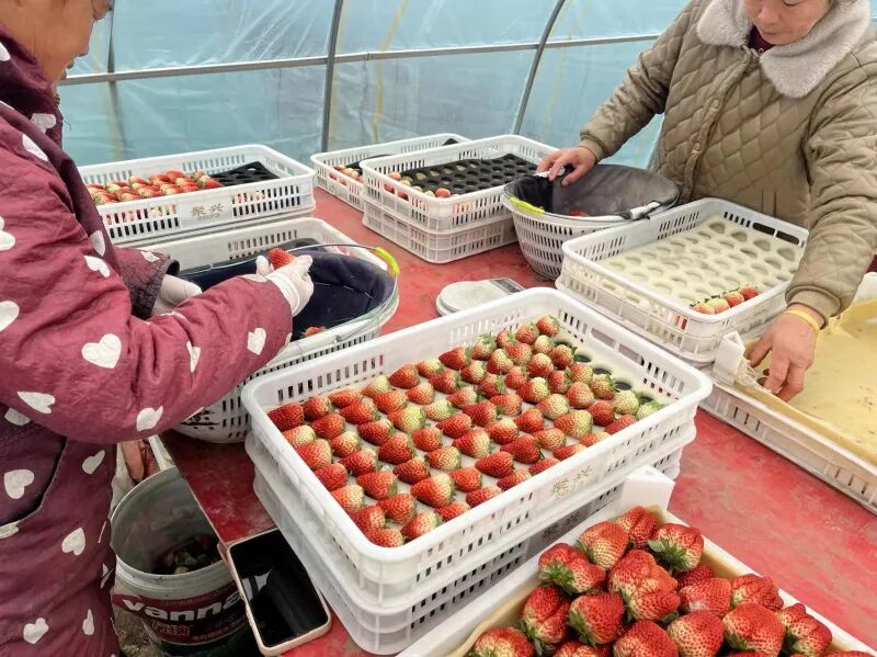 (記者 柏雪 通訊員 石殿軍 攝影報道)眼下正是草莓大量上市的季節(jié),潘集區(qū)蘆集鎮(zhèn)葉集村產業(yè)園內種植的大棚草莓也迎來了采摘期。在產業(yè)園的分揀臺前,大家圍著臺桌將草莓分揀裝盒,紅彤彤的草莓碼放整齊,像一張張笑臉,增添了一股喜慶吉祥的“年味”。