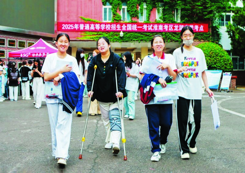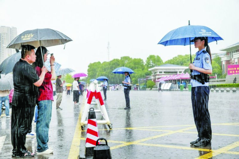 2025年高考期間,淮南高考考場外溫情流淌。一名女生高舉“哥哥姐姐加油!”的鮮紅標語牌粲然而笑;傘花涌動的通道中,執(zhí)勤交警化身“導航燈”守護前行路;而考場欄桿旁,母親緊握女兒雙手俯身叮嚀,目光隨少年身影沒入教學樓。人群與橫幅、叮囑與擁抱交織成網(wǎng),無言守護少年執(zhí)筆追光的沖刺路。此刻風雨無阻的陪伴,是奔赴星辰的起點。