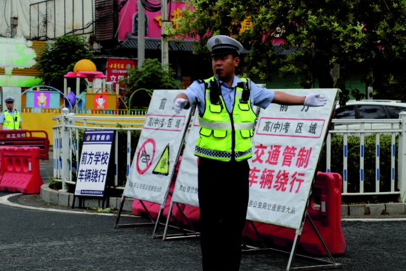 在鳳臺四中、鳳臺縣職教中心兩個考點周邊,執(zhí)勤警力在各自的崗位和路段上忙碌不停。高考期間,鳳臺縣公安局交管大隊通過實施區(qū)域化管控,清理考點周邊道路違停車輛,規(guī)范擺放禁行、禁鳴及交通繞行標識牌;推行“即停即走”護送模式,引導送考車輛快速?俊⒖忌踩萝,同步勸導家長勿聚集圍觀;動態(tài)疏導車流人流,實時優(yōu)化交通秩序等舉措,為考生們營造了一個安全、暢通、有序的交通安全環(huán)境。