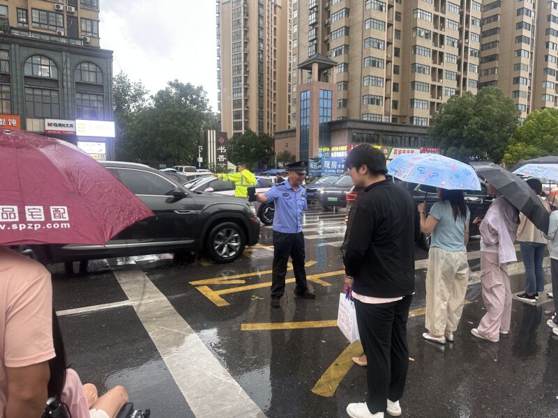 危急時刻,市公安局田家庵分局民警迅速行動。他們在積水中全力疏導(dǎo)交通,指揮車輛有序通行,引導(dǎo)送考車輛安全停靠,有效避免道路堵塞。此外,他們還主動護送考生。遇到被困考生,他們立即上前,撐傘遮雨助力考生安全上車;對于行動不便的考生,更是細心攙扶,確保其順利避雨,平安抵達安全區(qū)域。濕透的警服、堅定的步伐,構(gòu)筑起了風雨中的安全防線,也贏得了考生和家長一致的稱贊。