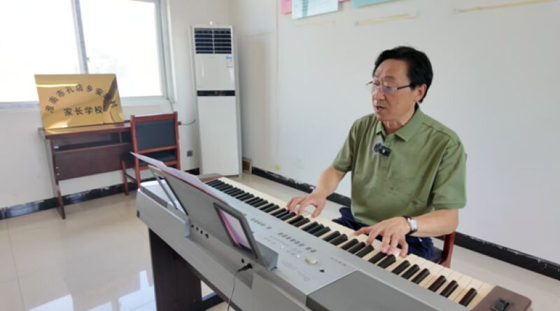 周世春在家長(zhǎng)學(xué)校彈奏《展翅迎朝陽(yáng)》