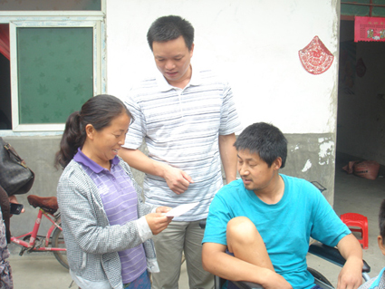 家住田集街道的楊開礦在2009年因意外導致高位截癱,從此只能坐在輪椅上。家中的二畝地及一切生活來源全靠妻子一人,三個孩子當中一個上小學,而另外兩個孩子因無錢上學只能呆在家。在如此艱難的情況下,2009年,貧困重度殘疾人生活救助為楊開礦家送去了溫暖!澳憧次覀兩砩洗┑囊路际侨思宜偷,家里根本沒有生活來源,這一個月給30塊錢,對于我們家來說真是幫了大忙了,還是國家政策好,感謝政府!睏铋_礦的妻子感激地說。聽說今年貧困重度殘疾人生活救助城鄉(xiāng)統(tǒng)一補助50元時,楊開礦顯得更激動了。楊開礦說,自從他癱瘓后,家里一切都靠妻子,雖然辛苦卻很難掙到錢,家里的生活很是貧困,平時不好意思麻煩社區(qū),實在熬不下去了才去四處求援,今年補助提高了,對他們這個家庭來說真是天大的好事。