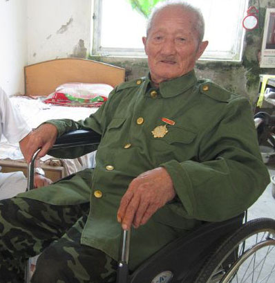 在老人的衣柜里,存放著被老人視為珍寶的兩件物品,一件是軍綠色上衣,另一件是一枚紀念中國人民抗日戰(zhàn)爭勝利60周年的紀念章。當記者要給老人拍照片時,老人穿上了那件綠上衣,戴上了那枚紀念章。