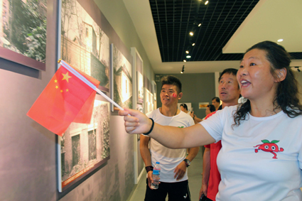 9月3日當(dāng)天,市民手持國(guó)旗在大通“萬(wàn)人坑”教育館內(nèi)追憶歷史,緬懷慘遭日寇戕害的礦工同胞,紀(jì)念抗日戰(zhàn)爭(zhēng)勝利70周年。記者從大通“萬(wàn)人坑”教育館了解到,該館當(dāng)天提前一個(gè)小時(shí)開(kāi)館,9點(diǎn)之前的一個(gè)小時(shí)內(nèi),入館參觀悼念的市民即達(dá)到了近2000人。