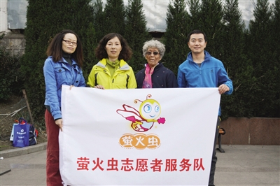 2015年3月,周宜(左二)和螢火蟲志愿者在一起參加黎明社區(qū)組織的公益活動。 武友坤 攝