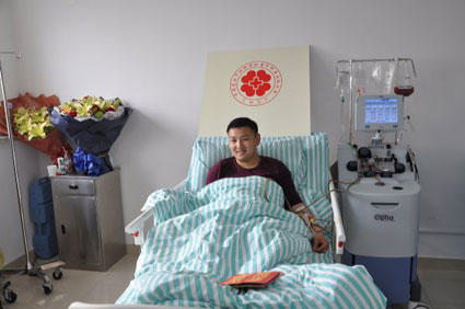 4個小時,從他身上成功采集出了252毫升造血干細胞混懸液。隨后,在場的濟南軍區(qū)總醫(yī)院的醫(yī)務(wù)人員立即帶著這充滿大愛的“生命種子”登上開往濟南的高速列車……