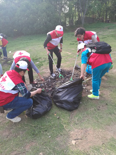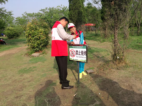 該報道見報后引起了廣大市民的熱議,不少市民撥打淮河早報熱線對破壞濕地環(huán)境的行為進行了譴責。為了更好地保護濕地環(huán)境,4月21日下午,淮南市紅十字會志愿服務基地正式掛牌成立,服務基地成立后每天將有兩名志愿者在濕地生態(tài)區(qū)內勸阻市民的一些不文明行為,并且為游玩的市民免費提供醫(yī)療救助服務。節(jié)假日期間,將會有更多的志愿者來到濕地生態(tài)區(qū)內勸導游人文明游玩,志愿者平日里兼顧清理游人丟棄的垃圾,用行動保護好濕地生態(tài)區(qū)的生態(tài)環(huán)境。