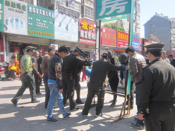 在小區(qū)周邊菜攤、水果攤、小吃攤等攤點的存在一定程度上滿足了居民的生活需求,但也給居民帶來道路擁堵、環(huán)境臟亂差等困擾。在電建路與水廠路之間的湖濱東路心享世城小區(qū)路段就存在這樣的情況,雖然只有約一千米長,但占道經(jīng)營嚴重,使得該路段經(jīng)常擁堵不堪,從這里經(jīng)過的車輛和行人通行困難,周邊居民意見很大。對此,按照“六城同創(chuàng)”要求,5月3日,田家庵區(qū)城管行政執(zhí)法局對該路段進行了集中整治,通過疏堵結(jié)合,使道路恢復了暢通,市容環(huán)境得到了改善。