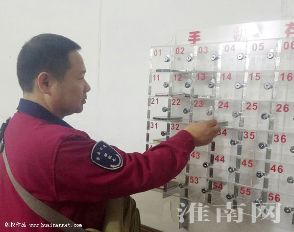 在公園東門(mén)調(diào)度站,淮河早報(bào)、淮南網(wǎng)記者看到,調(diào)度站內(nèi)新設(shè)置了一個(gè)手機(jī)存放柜,設(shè)有60余個(gè)小箱子,每個(gè)箱子都是透明的,上面都有對(duì)應(yīng)的數(shù)字編號(hào)和公交車(chē)駕駛員的名字。每個(gè)透明柜子都上了鎖,需要專(zhuān)用鑰匙才能打開(kāi)。據(jù)調(diào)度站工作人員介紹,公交車(chē)駕駛員上崗前,都要將手機(jī)統(tǒng)一存放到這個(gè)柜子里,由站服人員監(jiān)督管理。