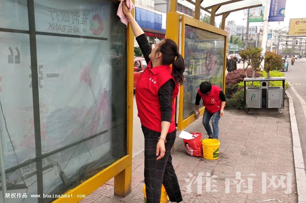 人來人往的公交車站臺,一群身穿紅馬甲的身影在忙碌著。4月11日,淮南義工聯(lián)合會的義工們走上街頭清洗公交站臺,市民紛紛為他們的行為點贊叫好。