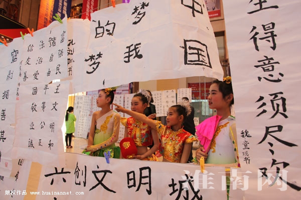 4月16日,由市文明委主辦的“創(chuàng)建文明城 共筑中國夢(mèng)”淮南市鄉(xiāng)村學(xué)校少年宮書法才藝大賽舉行。比賽分為硬筆書法組和軟筆書法組,來自全市75所鄉(xiāng)村學(xué)校少年宮的150名小選手齊聚一堂,用手中的筆書寫文明夢(mèng)想。 圖一:小選手用筆尖書寫文明。圖二:小朋友在欣賞書法作品。