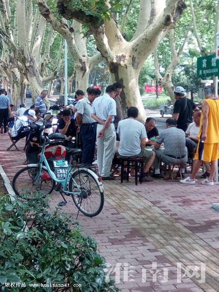 洞山文明北村居民向淮河早報、淮南網(wǎng)記者反映,從6月下旬以來,一些牌友便聚集在賓館路北端兩邊的人行道上“斗地主”。從每天下午1時開始,幾十人便在兩邊的人行道上4人一桌一字排開,每天都在10桌左右。再加上圍觀者,以及這些打牌者和看牌者亂停亂放的電動車、自行車,最終將該路段兩邊的人行道完全堵住,導(dǎo)致行人只能從機(jī)動車道上通行。另外,這些打牌者和看牌者隨地吐痰、亂扔煙頭及雜物的行為也有失文明。(記者)