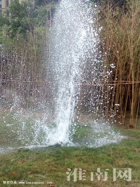 7月3日下午2時(shí)30分,淮河早報(bào)、淮南網(wǎng)記者在綠茵里小區(qū)東南角的草坪上看到,一處水龍頭疑似爆裂,噴出的水柱高達(dá)數(shù)米,汩汩“清泉”沿著草坪流到30米開(kāi)外的馬路上。 (記者)