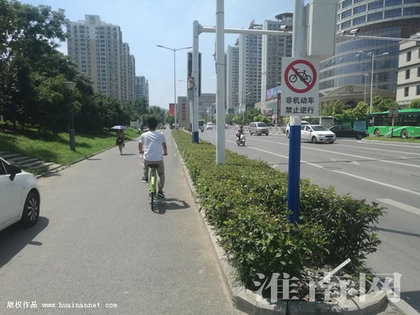 洞山中路是一條交通基礎(chǔ)設(shè)施相對比較完善的道路,道路兩側(cè)分布著專門的非機動車道,并劃出城市綠道,標出行進方向。8月14日上午,淮河早報、淮南網(wǎng)記者沿著洞山中路北側(cè)的非機動車道一路走一路觀察。根據(jù)機動車道行駛方向,該左側(cè)非機動車道上,非機動車應(yīng)該是由東向西方向行駛;春釉鐖、淮南網(wǎng)記者發(fā)現(xiàn),不時就會遇到由西向東方向逆向行駛的電動車、自行車等非機動車輛。