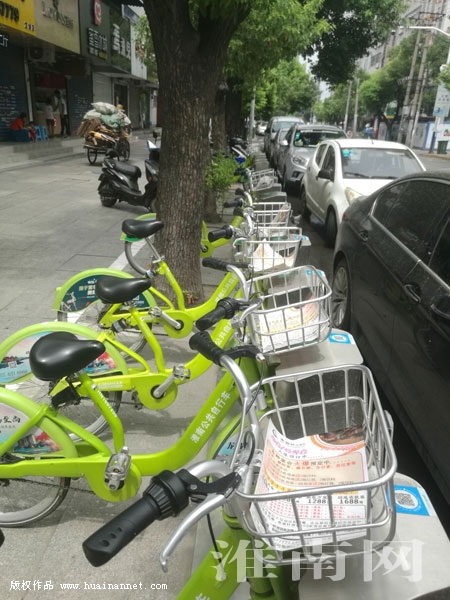 圖三:龍湖北路淮師附小旁一公共自行車租車點車籃里被放置的小廣告(本網(wǎng)創(chuàng)城報道組)(本網(wǎng)編輯 湯寧)