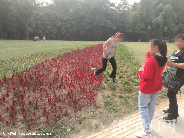 近日,龍湖景區(qū)內(nèi)一片雞冠花正開得鮮艷奪目,吸引了不少人駐足觀賞。不過,也出現(xiàn)了一些不文明觀賞行為。一些人為和美景合影,竟跑到花叢中,踩踏花草(如圖)。(記者)