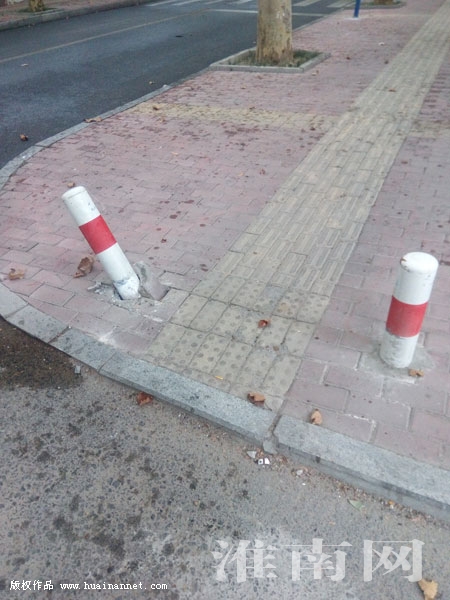 10月22日下午,市民張先生向淮河早報(bào)、淮南網(wǎng)記者反映,在劉家山路與賓館路相交處的人行道上,城管部門為了阻止機(jī)動(dòng)車在人行道上違停,特意在人行道邊安裝了鐵制的隔離柱。就在最近兩天,有一根隔離柱疑似被人用重器故意破壞了。(記者)