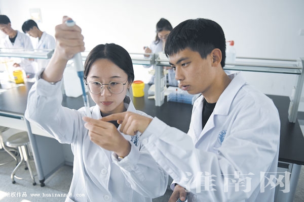 10月29日,江蘇護理職業(yè)學院2017級檢驗2班、淮南壽縣籍學生韓寶鑫(右)在課堂上做實驗。對于自己在今年國慶節(jié)期間對上海街頭一名心臟驟停市民進行心肺復蘇急救的行為,他認為是醫(yī)學生的使命擔當和本能反應(韓寶鑫滬上救人事跡本網(wǎng)昨日已作報道)。(通訊員 陳彬 編輯 湯寧)