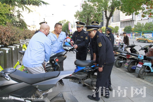 圖二:區(qū)城管隊(duì)員在“淮小綠”站點(diǎn)對違停車輛進(jìn)行清理(記者 李東華 通訊員 吳喆敏 編輯 湯寧)