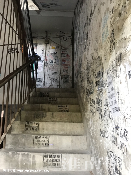 圖二:鐵路新村小區(qū)樓梯被貼的小廣告
