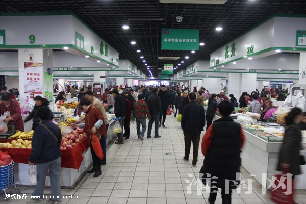 泉山農(nóng)貿(mào)市場(chǎng)由政府牽頭、企業(yè)建設(shè),占地面積7000多平方米,分為地上、地下兩層,共有500多攤位和100多個(gè)門面。當(dāng)天,淮河早報(bào)、淮南網(wǎng)記者在市場(chǎng)里看到,室內(nèi)裝修風(fēng)格明亮清爽,環(huán)境衛(wèi)生整潔,攤位展架井然有序。居民們細(xì)心比價(jià),認(rèn)真挑選著菜品。黃阿姨住在附近,她高興地說(shuō):“新市場(chǎng)挺好的,干干凈凈,比以前的露天市場(chǎng)好太多了,我們買菜也舒心多了。”