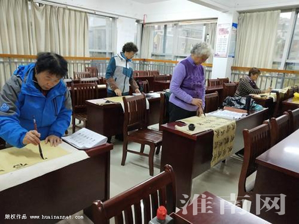 圖二:老人免費(fèi)在社區(qū)學(xué)習(xí)書法繪畫