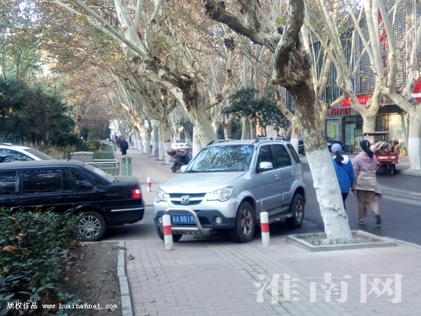11月26日下午,淮河早報、淮南網(wǎng)記者在賓館路北段看到,一名司機面對城管部門設(shè)置的禁止機動車亂停亂靠的隔離樁視而不見,照樣將自己的車違停在人行道上,導(dǎo)致路人無法正常通行。(記者)